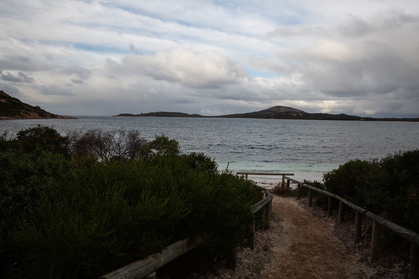 El campamento que habíamos seleccionado estaba cerrado; otro cercano solo era accesible por una ruta difícil (tal vez no tanto con la luz del día, pero poco atractivo en la oscuridad y la lluvia), así que decidimos acampar en un lugar de estacionamiento con baño en Duke of Orleans Bay, por la mañana descubrimos un hermoso lugar, ubicado frente a la bahía, con acceso a dos playas, por donde caminamos antes de regresar a la taberna para el desayuno.